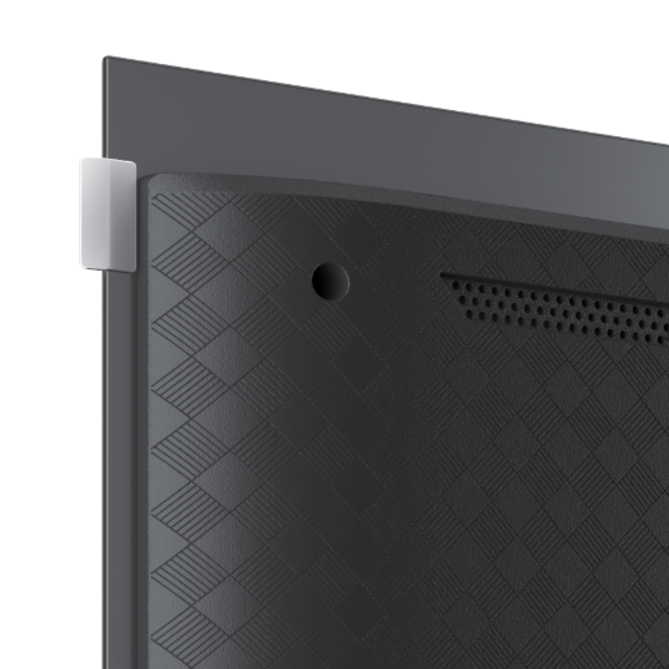 Son design épuré, fin et ultraplat, offre une image maximale pour un encombrement minimal. Avec son dos texturé et ses connecteurs latéraux partiellement dissimulés sur les modèles 55 et 65 pouces , il affiche un look épuré, sans fioritures. La construction mécanique interne est robuste, avec des dômes VESA solides fixés dans la structure métallique de l'ensemble. Un socle pivotant massif en métal est parfaitement assorti à la couleur du boîtier, laqué en noir charbon. Des accessoires et des solutions d'installation en option complètent votre installation de divertissement à domicile
